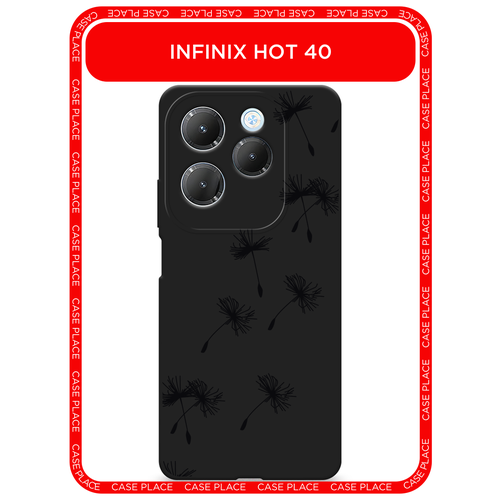 Черный матовый чехол на Infinix HOT 40/40 Pro / Инфиникс Хот 40/40 Про с принтом Летящие одуванчики