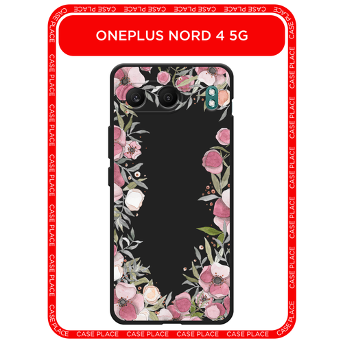Черный матовый чехол на OnePlus Nord 4 5G / Ван Плас Норд 4 5G с принтом Розовая цветочная рамка