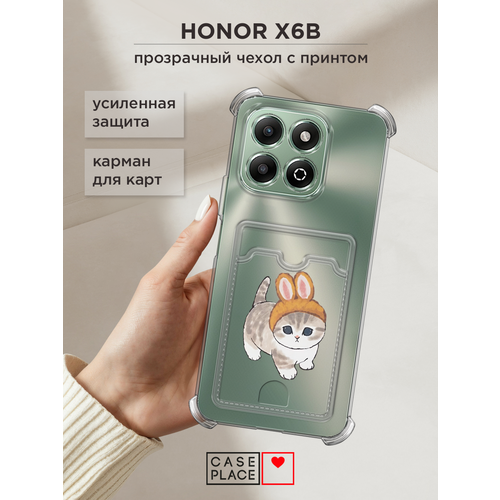 Чехол на Honor X6b (Хонор X6b) с картой и принтом Котик с ушками зайца