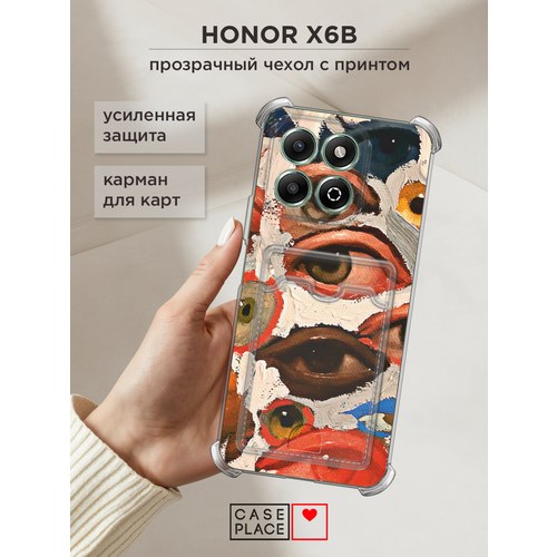 Чехол на Honor X6b (Хонор X6b) с картой и принтом Глаза масляная живопись