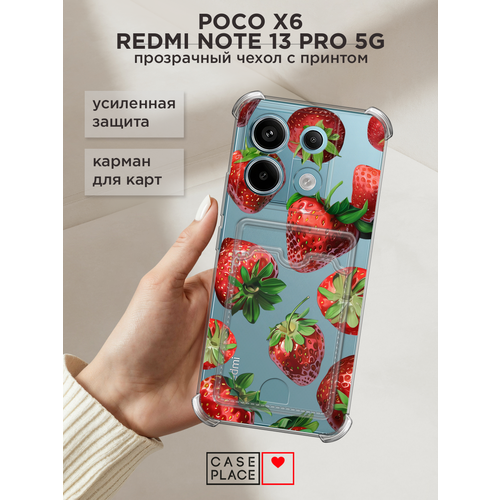 Чехол на Poco X6/Redmi Note 13 Pro 5G (Поко Х6/Сяоми Редми Нот 13 Про 5G) с картой и принтом Сочная клубника 4