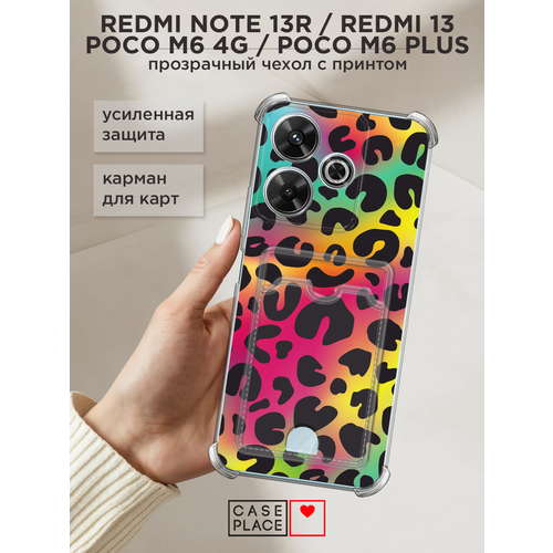 Чехол на Xiaomi Redmi Note 13R/Redmi 13/Poco M6 4G/M6 Plus (Сяоми Редми Ноут 13R/Редми 13/Поко М6 4G/M6 Плюс) с картой и принтом Леопард