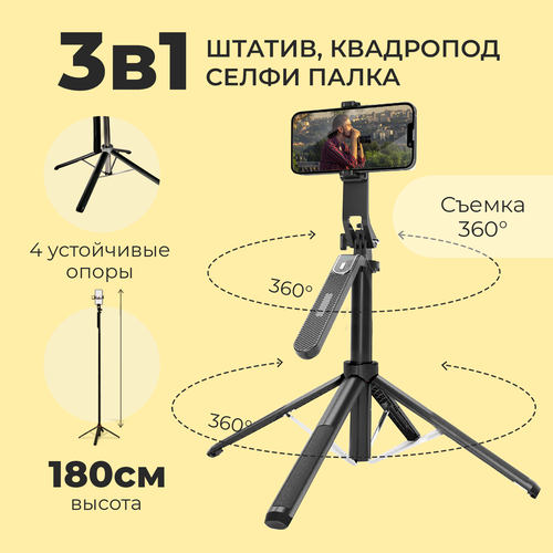 Цены на Штатив для телефона, 132см, монопод, селфи-палка, Bluetooth-пульт, 2 крепления, подставка, стабилизатор, держатель черный в г. Екатеринбург