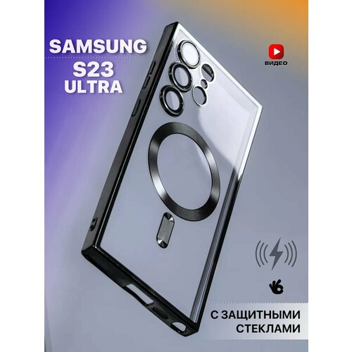 Чехол О'кейси MagSafe, для Samsung Galaxy S23 Ultra, с окантовкой, черный, прозрачный