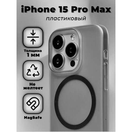 Очень тонкий чехол на Айфон 15 Про Макс / iPhone 15 Pro Max толщиной 1 мм, c поддержкой MagSafe, матовый, пластиковый