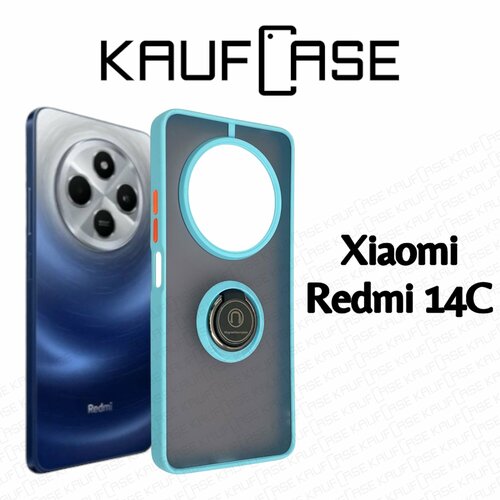 Чехол бампер для телефона Xiaomi Redmi 14C (6.88"), голубая рамка. Кольцо-держатель