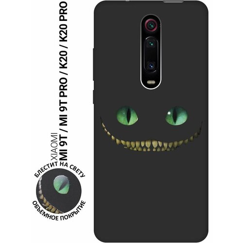 Матовый Soft Touch силиконовый чехол на Xiaomi Mi 9T, Mi 9T Pro, K20, K20 Pro, Сяоми Ми 9Т, Ми 9Т Про с 3D принтом "Cheshire Cat" черный
