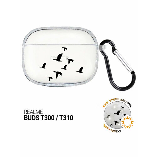 Чехол на Realme Buds T300 / T310 с принтом "Flock of Ducks" прозрачный