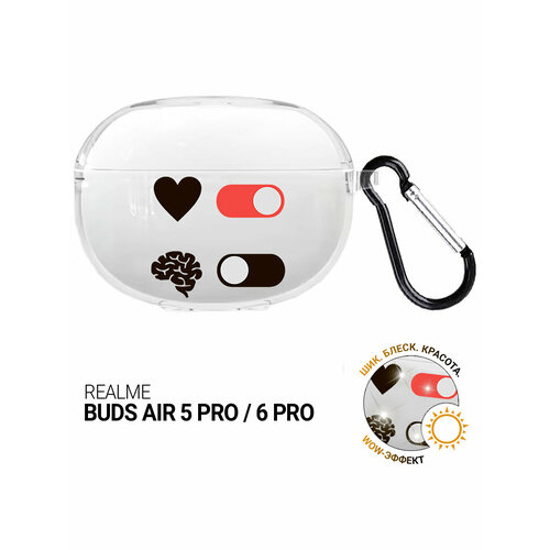 Чехол на Realme Buds Air 5 Pro / 6 Pro с принтом "Brain Off" прозрачный