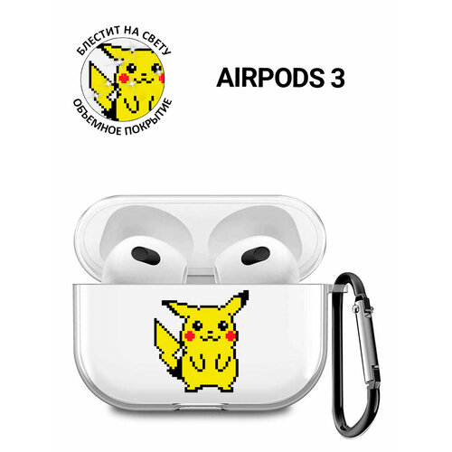 Прозрачный чехол для наушников Apple AirPods 3 / АирПодс 3 силиконовый с 3D принтом "Pixel Pikachu"