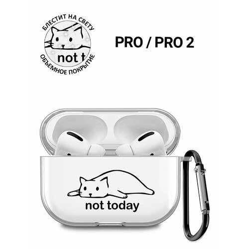 Прозрачный чехол для наушников Apple AirPods Pro / АирПодс Про силиконовый с 3D принтом "Not Today"