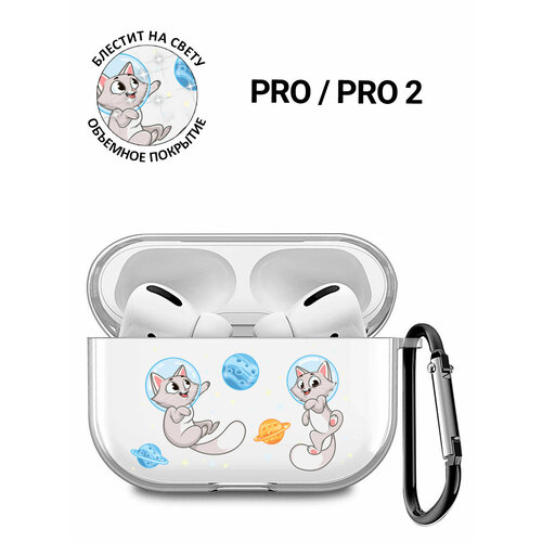 Прозрачный чехол для наушников Apple AirPods Pro / АирПодс Про силиконовый с 3D принтом "CosmoCats"