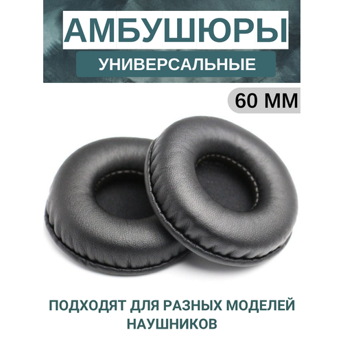 Амбушюры для наушников универсальные 60 мм (экокожа) черные, 2 шт.