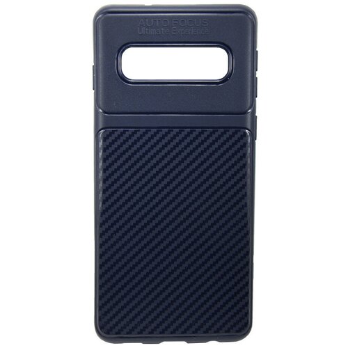 Накладка силиконовая Auto Focus для Samsung Galaxy S10 SM-G973 под карбон синяя