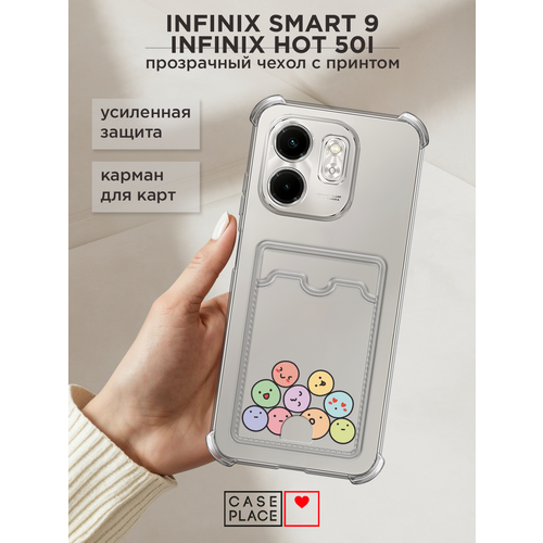 Чехол на Infinix Smart 9/Hot 50i (Инфиникс Смарт 9/Хот 50i) с картой и принтом Со смайликами