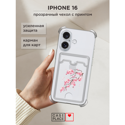 Чехол на Apple iPhone 16 (Айфон 16) с картой и принтом Ветка сакуры