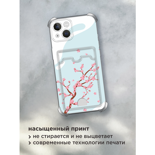 Чехол на Apple iPhone 13 (Айфон 13) с картой и принтом Цветущая ветка сакуры