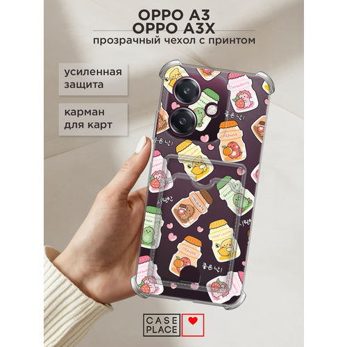 Чехол на Oppo A3/A3x (Оппо А3/A3x) с картой и принтом Динозаврики с напитками