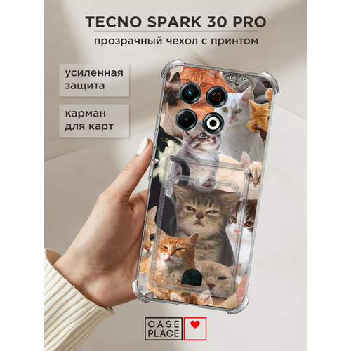 Чехол на Tecno Spark 30 Pro (Текно Спарк 30 Про) с картой и принтом Мемные коты