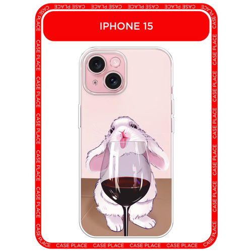 Чехол на Apple iPhone 15 / Айфон 15 с принтом Кролик облизывает бокал, прозрачный