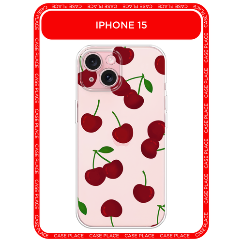 Чехол на Apple iPhone 15 / Айфон 15 с принтом Вишни паттерн 2, прозрачный