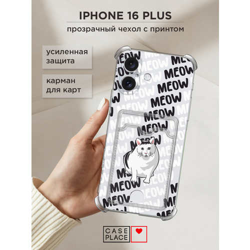 Чехол на Apple iPhone 16 Plus (Айфон 16 Плюс) с картой и принтом Кот мем