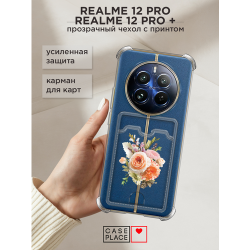 Чехол на Realme 12 Pro/Realme 12 Pro+ (Реалми 12 Про/Реалми 12 Про Плюс) с картой и принтом Нежный букет