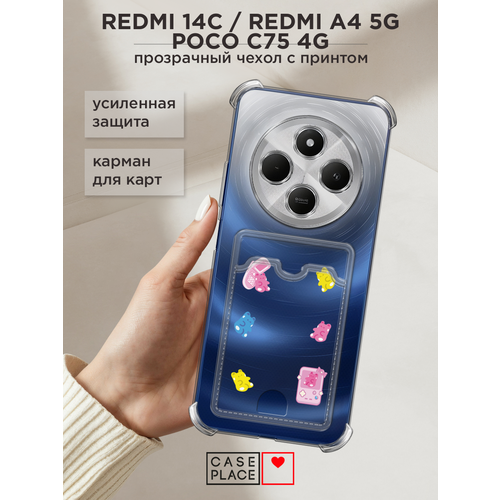 Чехол на Xiaomi Redmi 14C/Poco C75 4G/Redmi A4 5G/Poco M7 5G (Сяоми Редми 14C/Поко C75 4G/Редми А4 5G/Поко M7 5G) с картой и принтом Мармеладные мишки