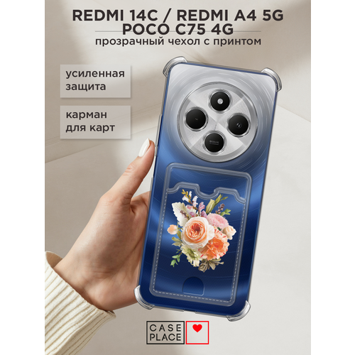 Чехол на Xiaomi Redmi 14C/Poco C75 4G/Redmi A4 5G/Poco M7 5G (Сяоми Редми 14C/Поко C75 4G/Редми А4 5G/Поко M7 5G) с картой и принтом Нежный букет