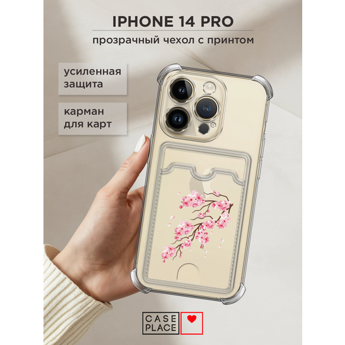 Чехол на Apple iPhone 14 Pro (Айфон 14 Про) с картой и принтом Ветка сакуры