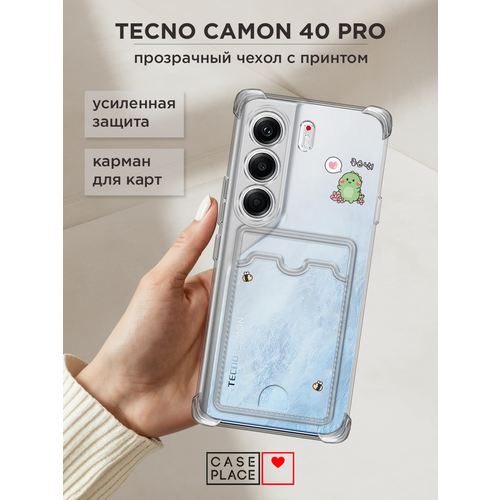 Чехол на Tecno Camon 40 Pro (Текно Камон 40 Про) с картой и принтом Динозавр и пчёлки