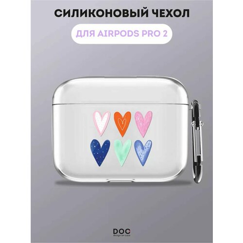 Силиконовый чехол DesignOnCase на AirPods Pro/Pro 2, с принтом Нарисованные сердечки