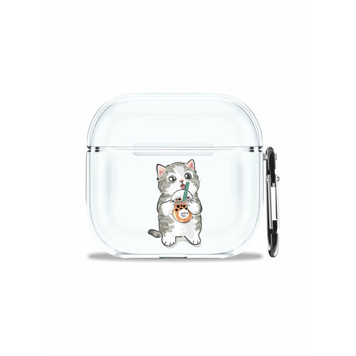 Силиконовый чехол DesignOnCase для беспроводных наушников AirPods 4, с карабином, глянцевый, Котёнок кусь