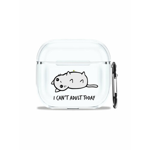 Силиконовый чехол DesignOnCase для беспроводных наушников AirPods 4, с карабином, глянцевый, I can't adult today