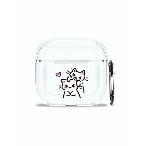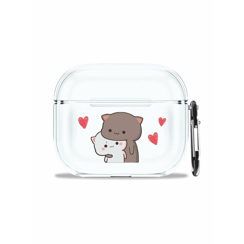 Силиконовый чехол DesignOnCase для беспроводных наушников AirPods 3, с карабином, глянцевый, Коты обнимаются, сердечки