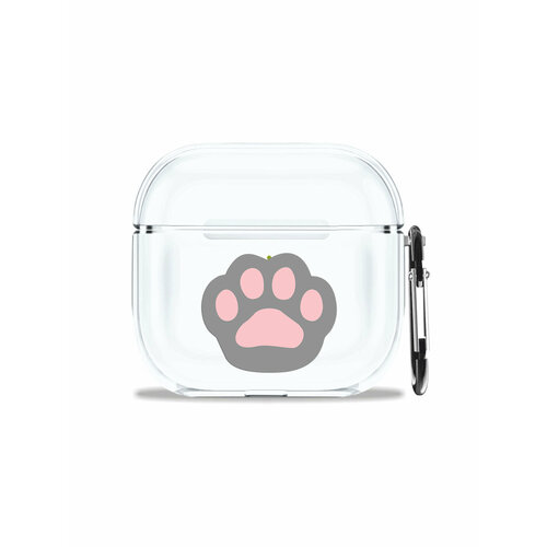 Силиконовый чехол DesignOnCase для беспроводных наушников AirPods 4, с карабином, глянцевый, Кошачья лапка