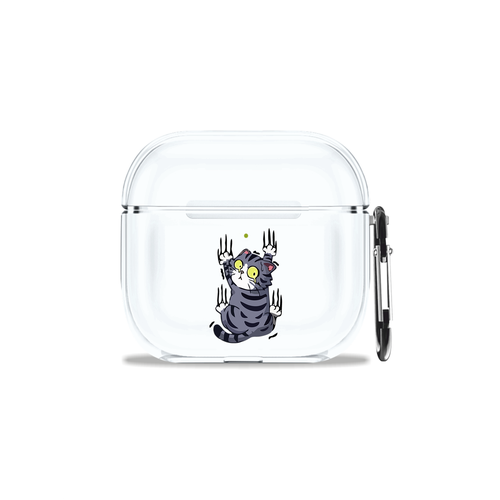 Силиконовый чехол DesignOnCase для беспроводных наушников AirPods 4, с карабином, глянцевый, Кот сползает