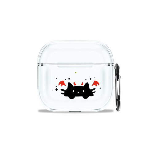 Силиконовый чехол DesignOnCase для беспроводных наушников AirPods 4, с карабином, глянцевый, Котенок-дьяволенок