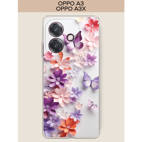 Силиконовый чехол "Фиолетовые бабочки и цветы" на Oppo A3/A3x / Оппо А3/A3x
