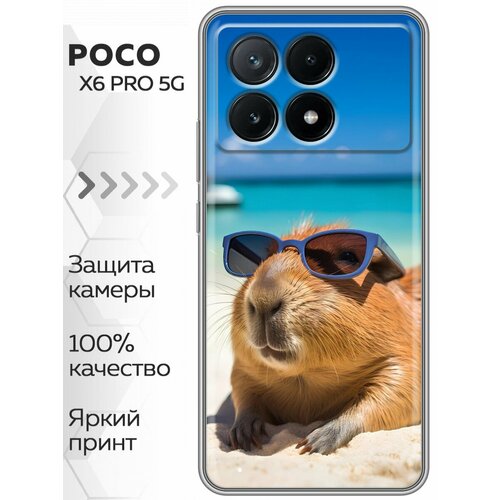 Чехол для Xiaomi Poco X6 Pro 5G с принтом Смешные капибары (Сяоми Поко Х6 Про 5G)
