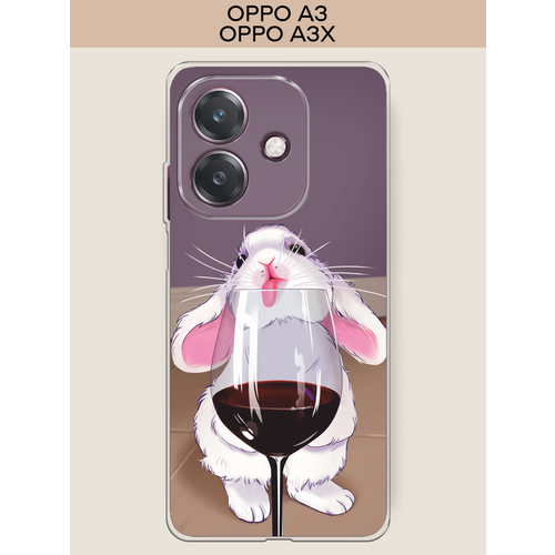 Чехол на Oppo A3/A3x / Оппо А3/A3x с принтом Кролик с бокалом