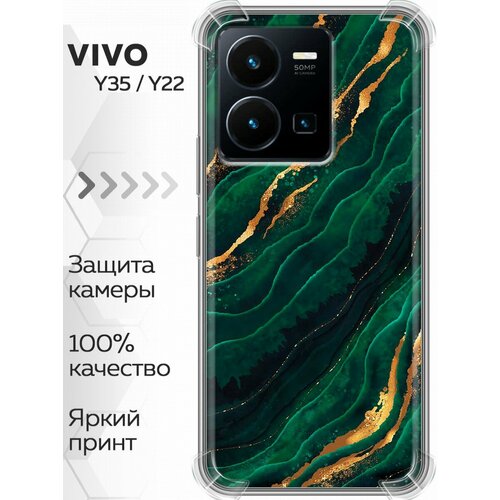 Дизайнерский силиконовый с усиленными углами чехол для Виво У22 / Vivo Y22 Мрамор зеленое золото