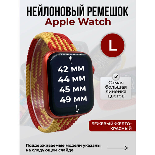 Нейлоновый ремешок для Apple Watch 1-9 / SE / ULTRA (42/44/45/49 мм), без застежки, бежевый-желто-красный 2, размер L