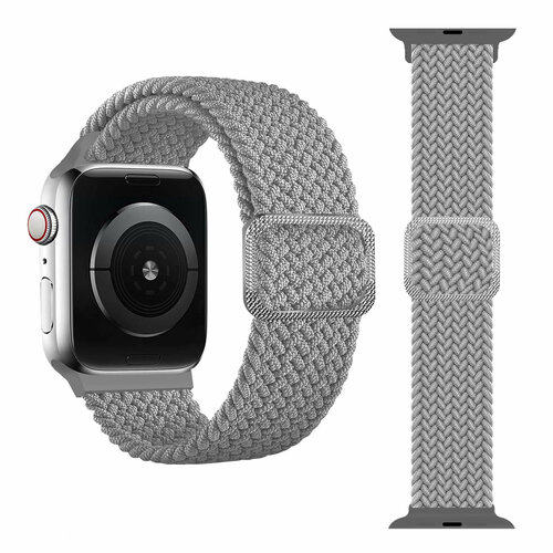 Ремешок плетеный для часов Apple Watch Series 1-10 и Ultra 42/44/45/49 мм, X9 Pro2 / X9+ Ultra2, 08 светло-серый