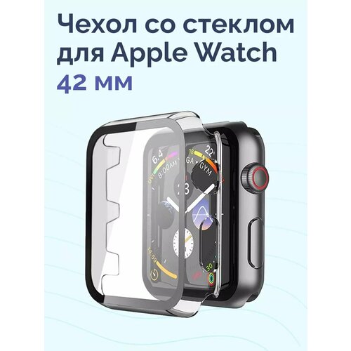 Чехол на Apple Watch 42 мм с защитным стеклом прозрачный