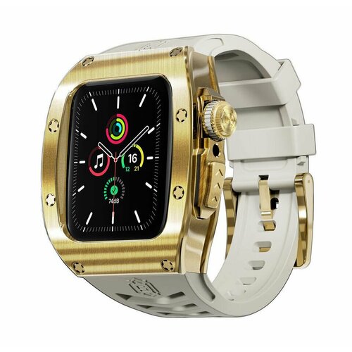 Премиальный ремешок для Apple Watch 44 / 45 mm Стальной в стиле Richard Mille Beige/Gold
