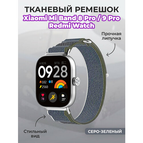 Тканевый ремешок для Xiaomi Mi Band 8 Pro / Xiaomi Mi Band 9 Pro / Redmi Watch 4, на липучке, серо-зеленый