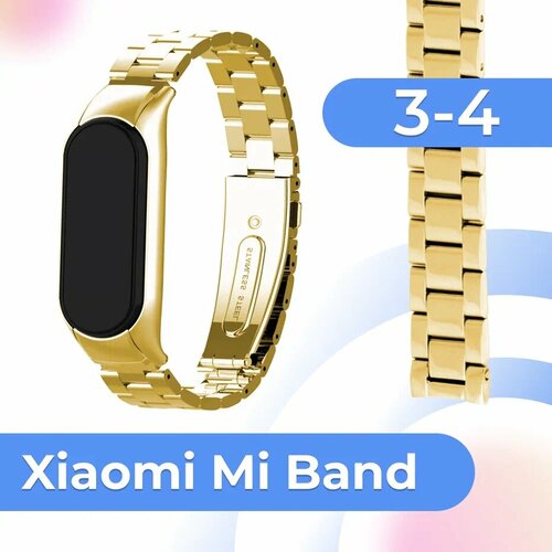 Металлический ремешок для Xiaomi Mi Band 3/4 / Блочный ремешок на Ми Бэнд 3/4, на застежке, Золото
