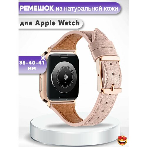 Ремешок из натуральной кожи для смарт-часов Apple Watch 38-40-41мм - розовый