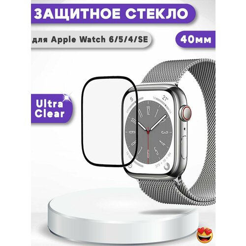 Закаленное защитное стекло для Apple Watch Series SE, 6, 5, 4 - 40мм, с черной рамкой